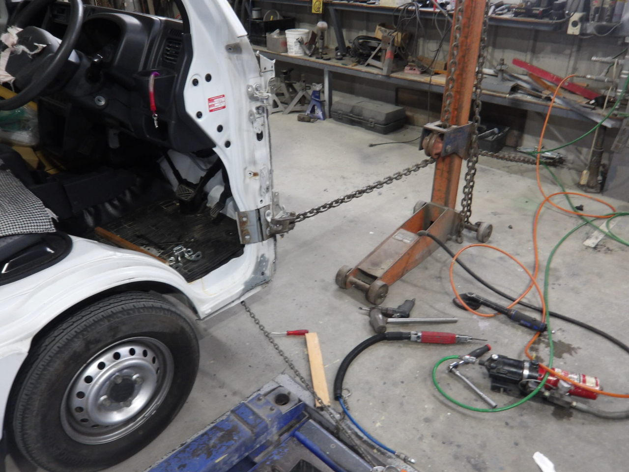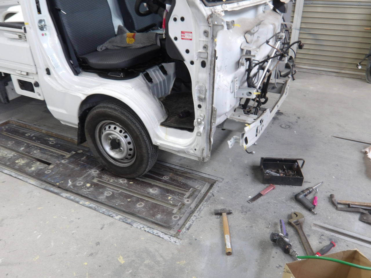 フロントピラー下部が2センチ近く後ろへ下がっている軽トラ